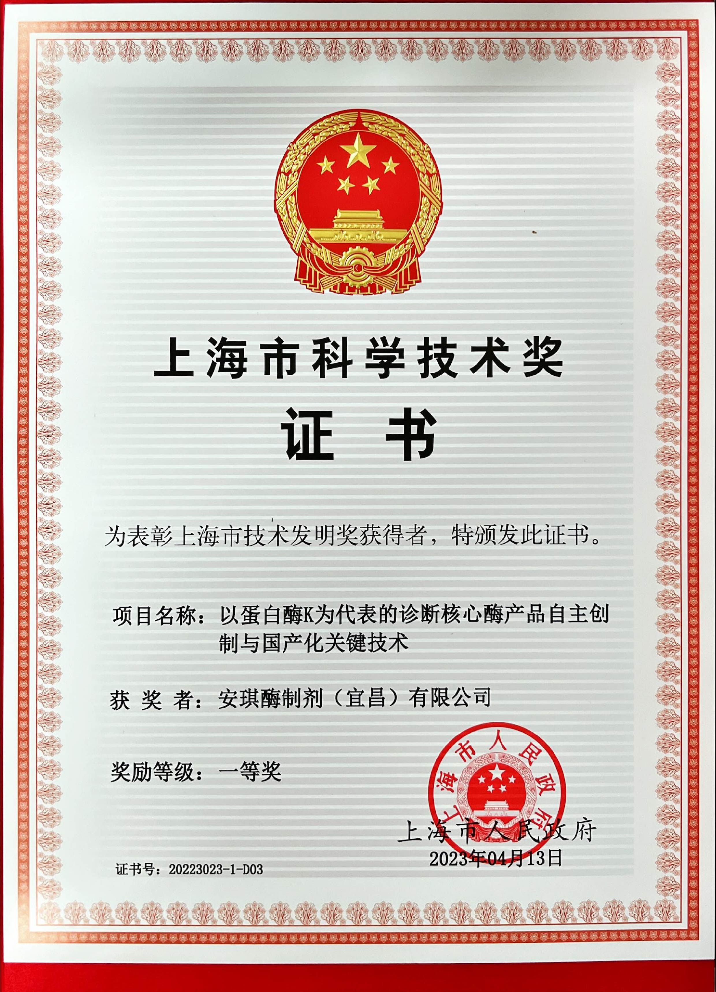 2023 上海市科學(xué)技術(shù)獎(jiǎng)一等獎(jiǎng)——蛋白酶K