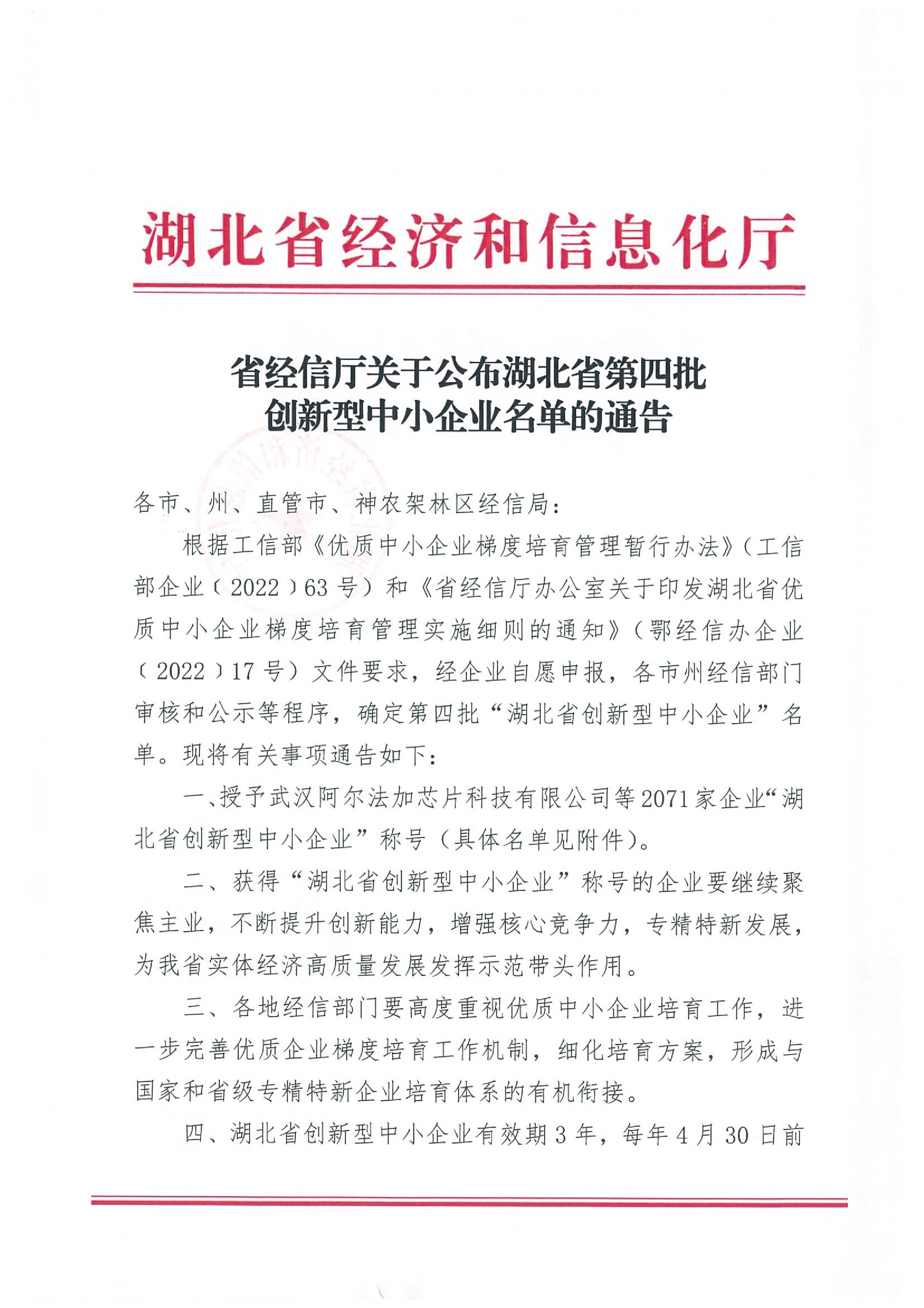 湖北省第四批創(chuàng)新型中小企業(yè)